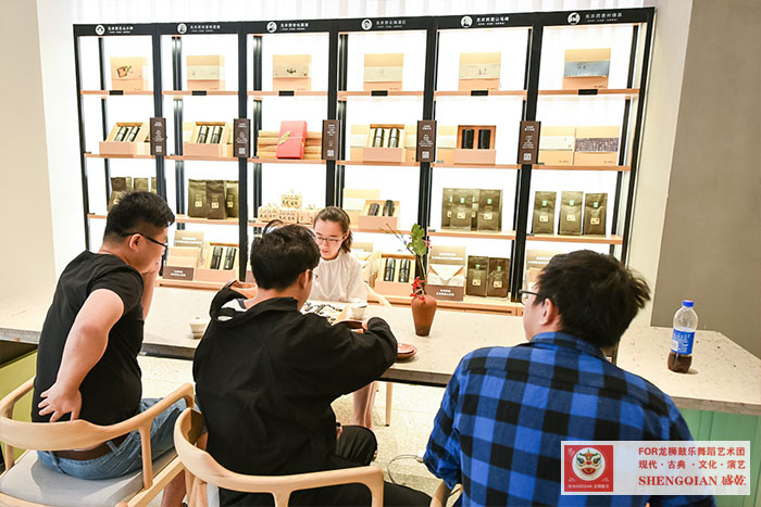 如今,原來的茶館走上了更講究消費體驗的“升級”之路,一個個請來設(shè)計師做室內(nèi)整體設(shè)計,中式布局,變得不那么擁擠了,木頭材質(zhì),看起來更回歸自然,也更講究起茶道來。 而不久前剛剛落成的“一代宗師”茶館,卻反其道而行,沒有大量的運用“流行茶館”中通常用的木頭等材質(zhì),而是用玻璃和大理石這兩種主材質(zhì)為整個茶館營造出了一種充滿“當代”設(shè)計感的“國際范兒”中國茶館。